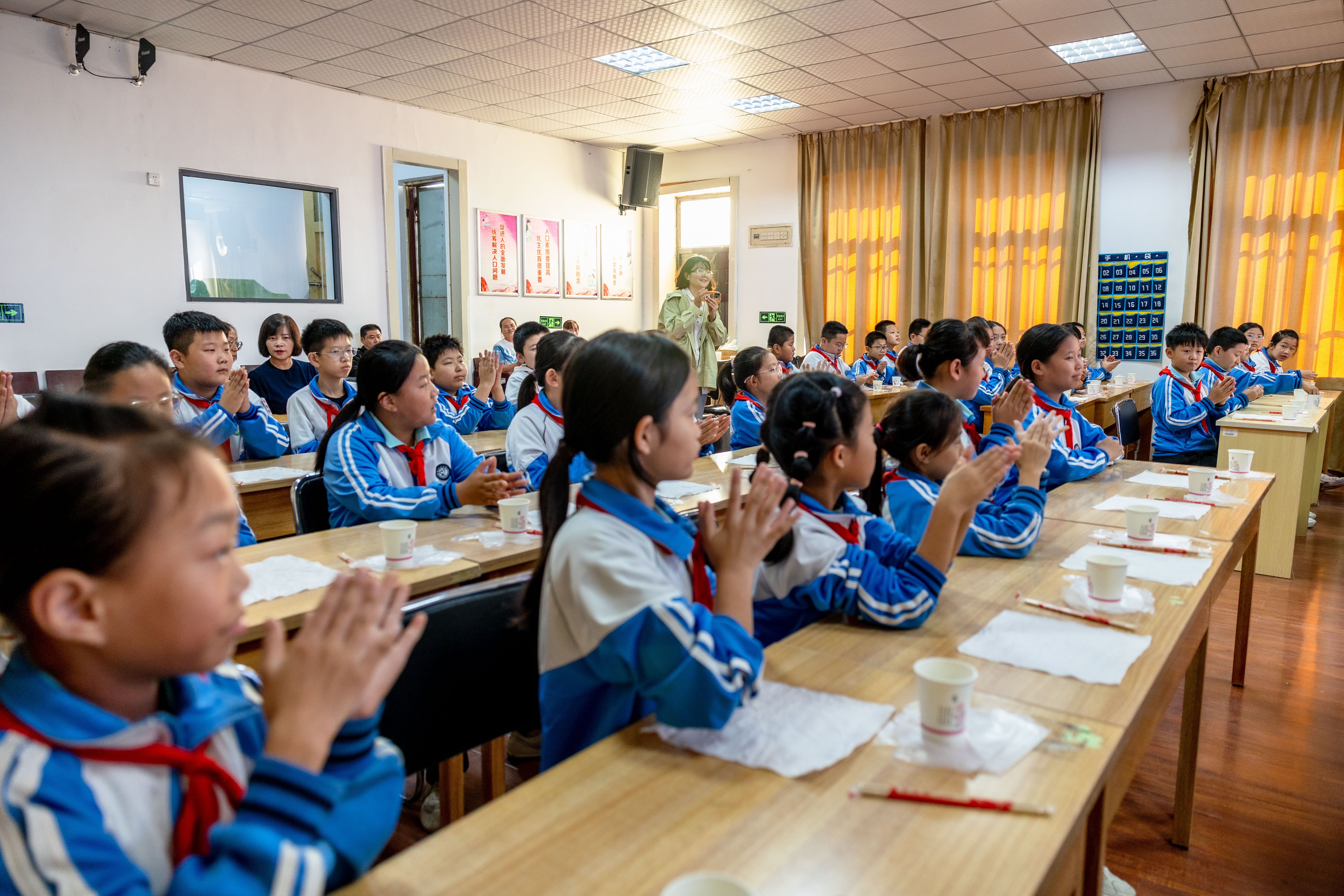 非遗扎染体验环节。市住建局工作人员为孩子们讲解了相关的历史文化知识,现场指导孩子们动手体验扎染技艺,同学们亲手体验了扎染技艺的魅力。通过动手实践,孩子们不仅感受到了非物质文化遗产的独特魅力,更增强了对传统文化保护传承的直观认识和兴趣。
