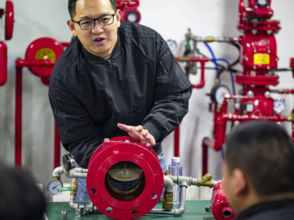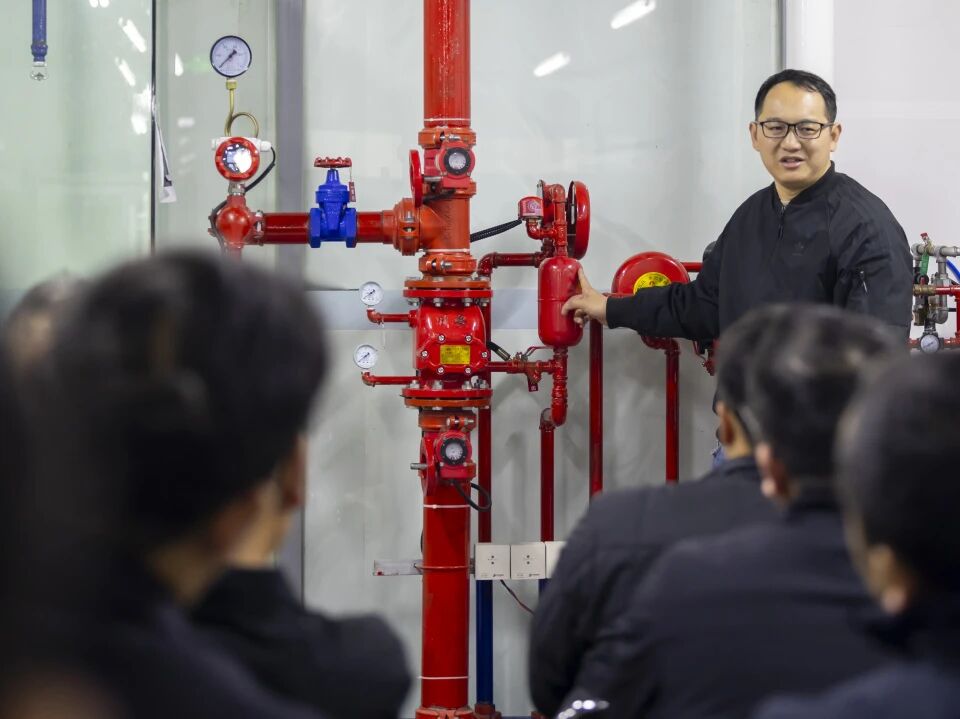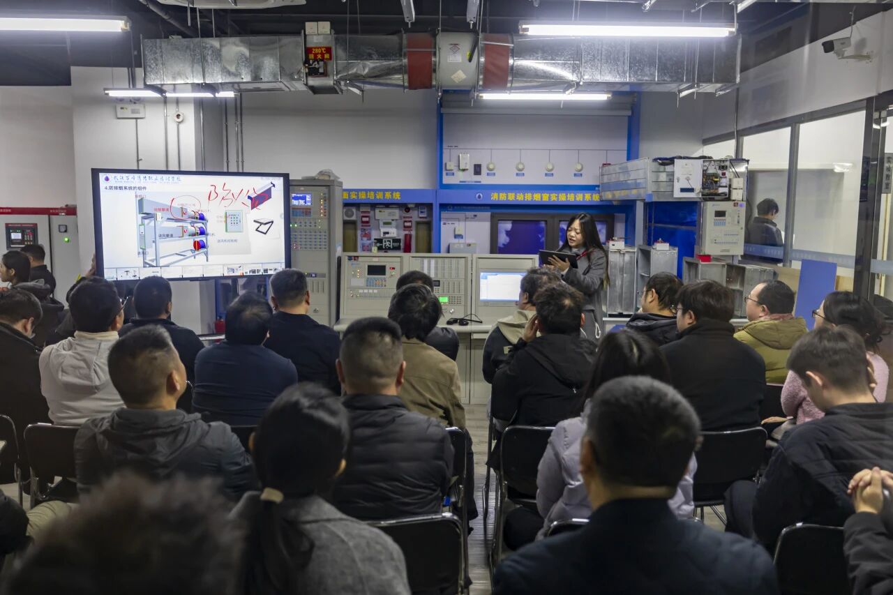 此次培训首次增加了联动实操演练的环节,参训学员分组交替进行建筑消防设施理论学习和现场联动实操教学,在专业人员指导下,对火灾自动报警、自动喷水灭火、防排烟等系统进行了实地操作与考核,强化了防火技术应用和现场处置能力。